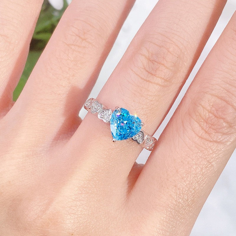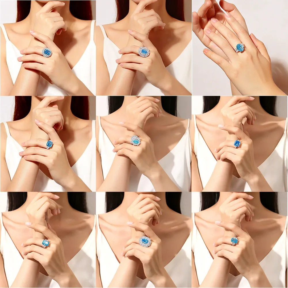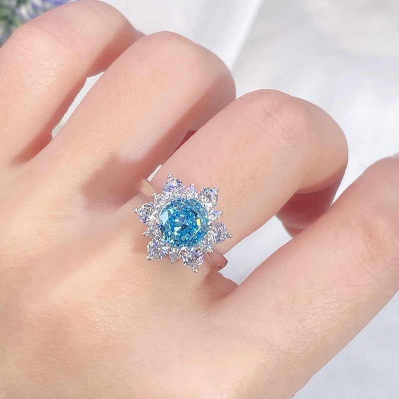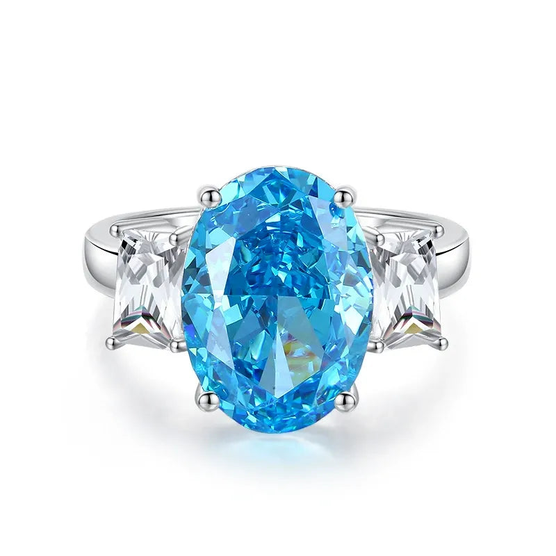 2025 Nejnovější Prsten s Mořským Akyvamarínem a Vysoce Uhlíkovým Diamantem ze Stříbra S925