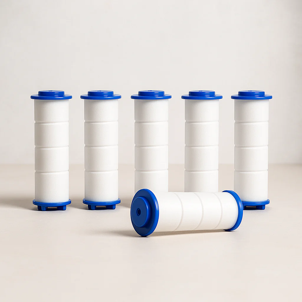 Pro dosažení nejlepších výsledků pro pokožku, vlasy a celkovou pohodu doporučujeme měnit filtr přibližně každé 2 měsíce, nebo když si všimnete jeho výrazné změny barvy. Spotřeba se může lišit v závislosti na kvalitě vody ve vaší oblasti a frekvenci sprchování.