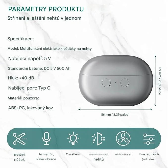 Zaoblené bezpečnostní čepele zastřihují čistě a lešticí hlava práci dokončí, takže jsou nehty hladké a dokonalé jako ze salonu.