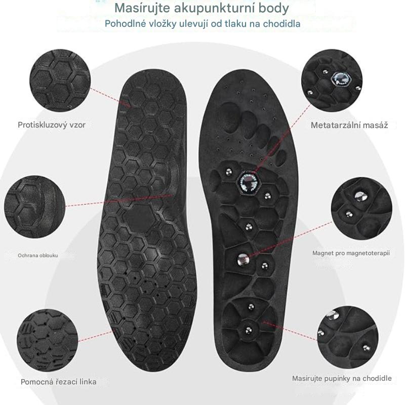 Stimulace reflexních zón: Výstupky a masážní struktury na stélce stimulují reflexní zóny, čímž aktivují nervová zakončení a zlepšují krevní oběh. To napomáhá rozšiřování cév a podporuje cirkulaci. Zajišťuje pohodlí nohou a předchází špatnému prokrvení způsobenému chladem.